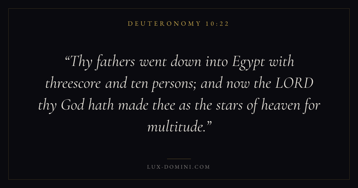 Thy fathers went down into Egypt with threescore and ten persons; and now the LORD thy God hath made thee as the stars of heaven for multitude.