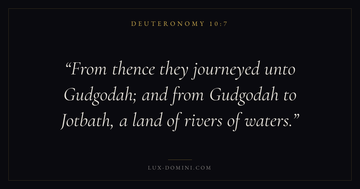 From thence they journeyed unto Gudgodah; and from Gudgodah to Jotbath, a land of rivers of waters.
