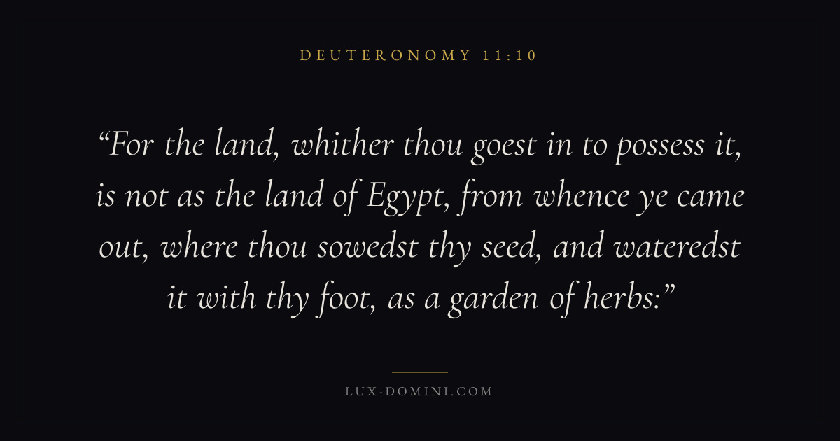 For the land, whither thou goest in to possess it, is not as the land of Egypt, from whence ye came out, where thou sowedst thy seed, and wateredst it with thy foot, as a garden of herbs:
