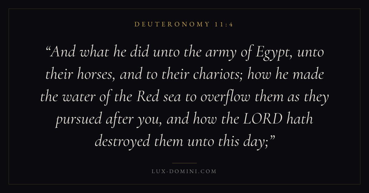 And what he did unto the army of Egypt, unto their horses, and to their chariots; how he made the water of the Red sea to overflow them as they pursued after you, and how the LORD hath destroyed them unto this day;
