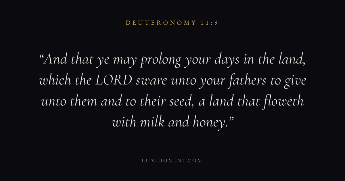 And that ye may prolong your days in the land, which the LORD sware unto your fathers to give unto them and to their seed, a land that floweth with milk and honey.