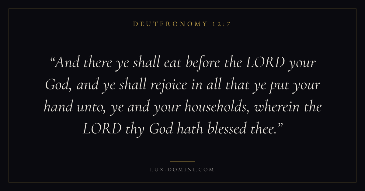 And there ye shall eat before the LORD your God, and ye shall rejoice in all that ye put your hand unto, ye and your households, wherein the LORD thy God hath blessed thee.