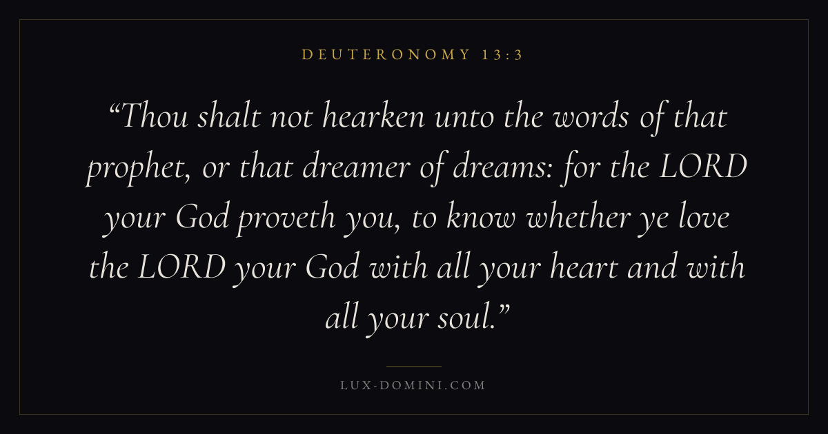 Thou shalt not hearken unto the words of that prophet, or that dreamer of dreams: for the LORD your God proveth you, to know whether ye love the LORD your God with all your heart and with all your soul.