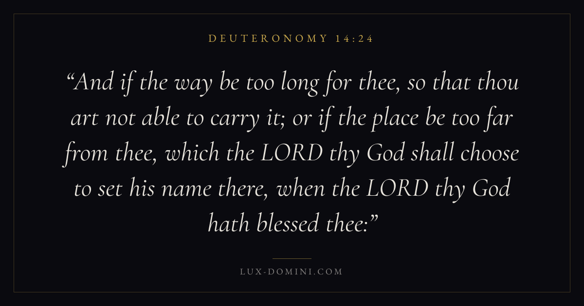 And if the way be too long for thee, so that thou art not able to carry it; or if the place be too far from thee, which the LORD thy God shall choose to set his name there, when the LORD thy God hath blessed thee: