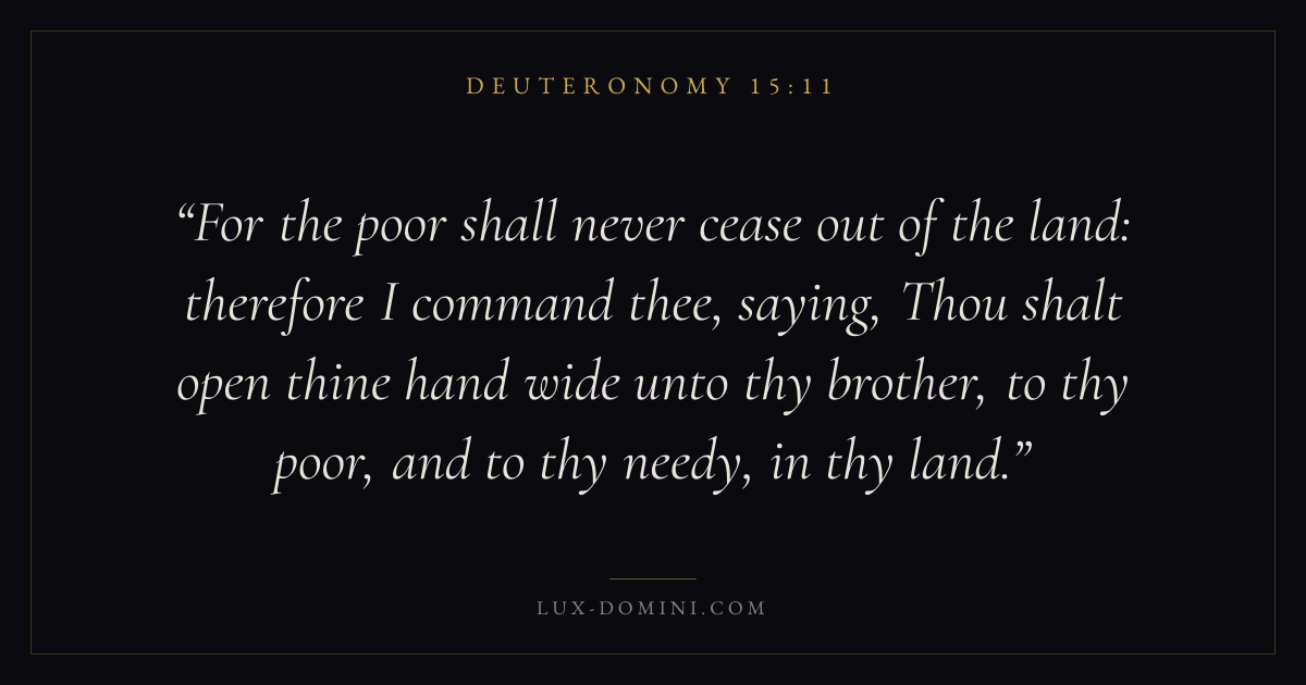 For the poor shall never cease out of the land: therefore I command thee, saying, Thou shalt open thine hand wide unto thy brother, to thy poor, and to thy needy, in thy land.