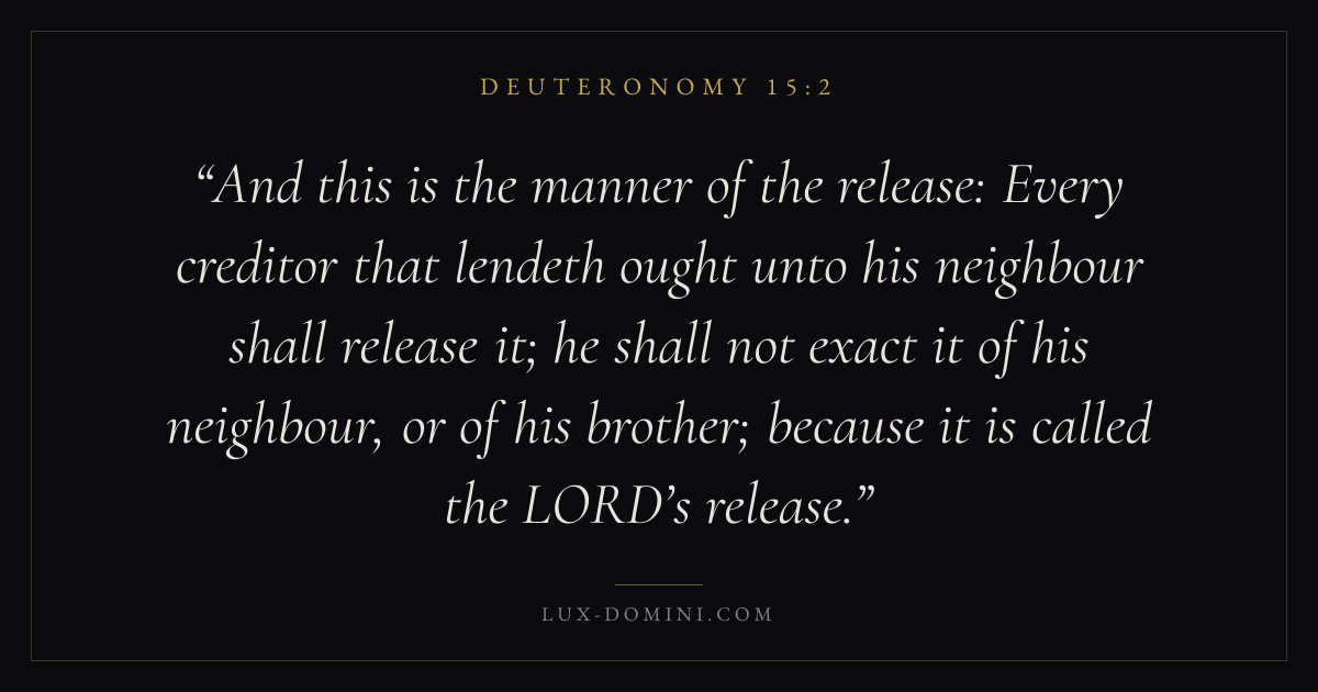 And this is the manner of the release: Every creditor that lendeth ought unto his neighbour shall release it; he shall not exact it of his neighbour, or of his brother; because it is called the LORD’s release.