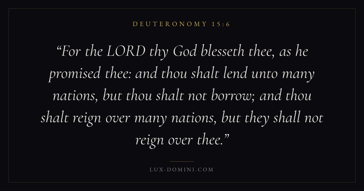 For the LORD thy God blesseth thee, as he promised thee: and thou shalt lend unto many nations, but thou shalt not borrow; and thou shalt reign over many nations, but they shall not reign over thee.