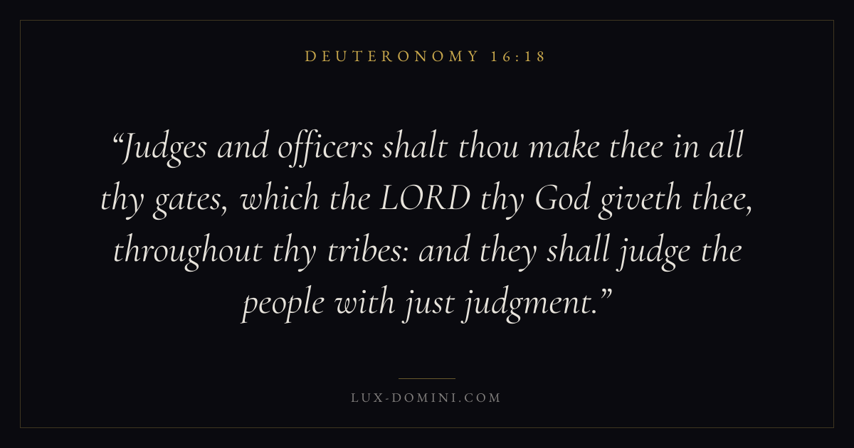 Judges and officers shalt thou make thee in all thy gates, which the LORD thy God giveth thee, throughout thy tribes: and they shall judge the people with just judgment.