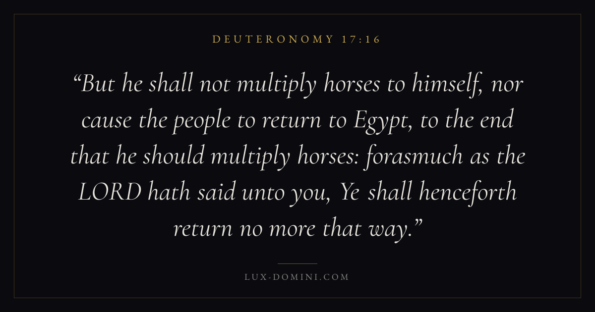 But he shall not multiply horses to himself, nor cause the people to return to Egypt, to the end that he should multiply horses: forasmuch as the LORD hath said unto you, Ye shall henceforth return no more that way.