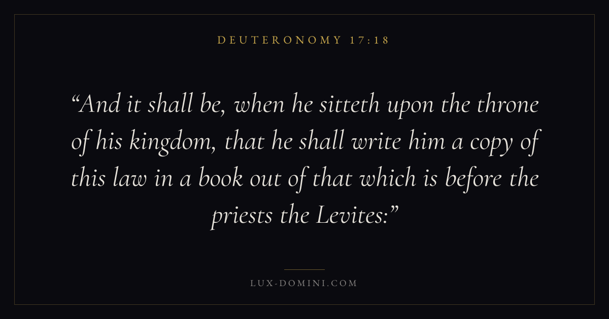 And it shall be, when he sitteth upon the throne of his kingdom, that he shall write him a copy of this law in a book out of that which is before the priests the Levites:
