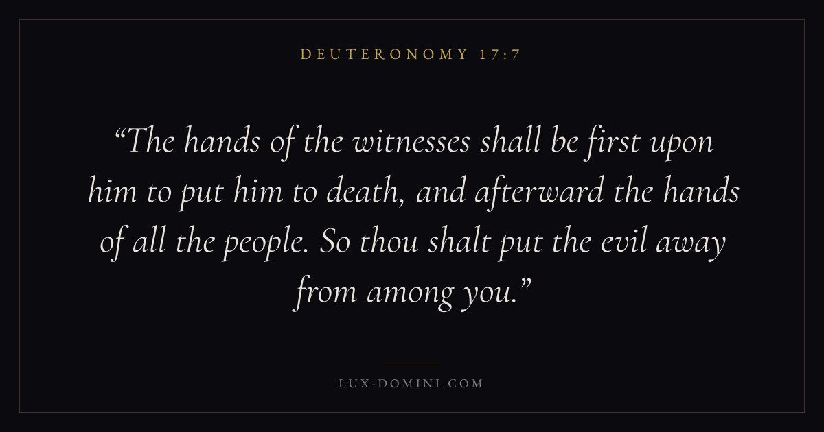 The hands of the witnesses shall be first upon him to put him to death, and afterward the hands of all the people. So thou shalt put the evil away from among you.