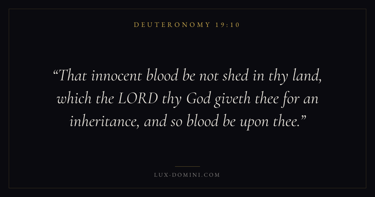 That innocent blood be not shed in thy land, which the LORD thy God giveth thee for an inheritance, and so blood be upon thee.