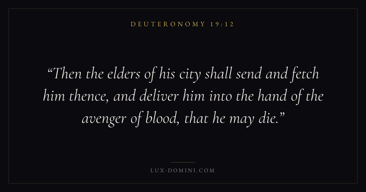 Then the elders of his city shall send and fetch him thence, and deliver him into the hand of the avenger of blood, that he may die.