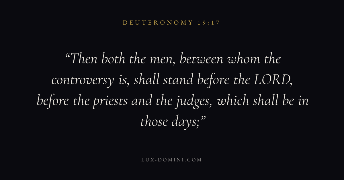 Then both the men, between whom the controversy is, shall stand before the LORD, before the priests and the judges, which shall be in those days;
