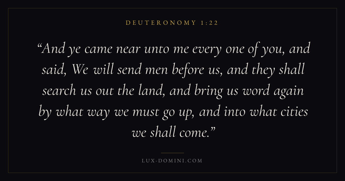 And ye came near unto me every one of you, and said, We will send men before us, and they shall search us out the land, and bring us word again by what way we must go up, and into what cities we shall come.