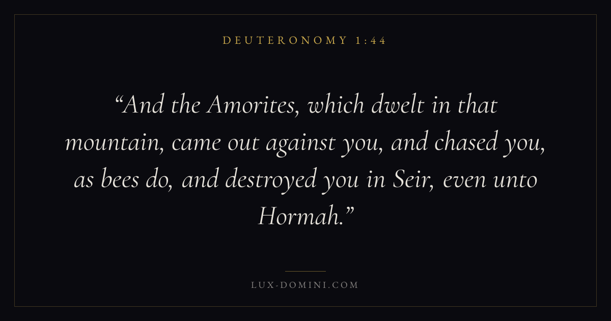 And the Amorites, which dwelt in that mountain, came out against you, and chased you, as bees do, and destroyed you in Seir, even unto Hormah.