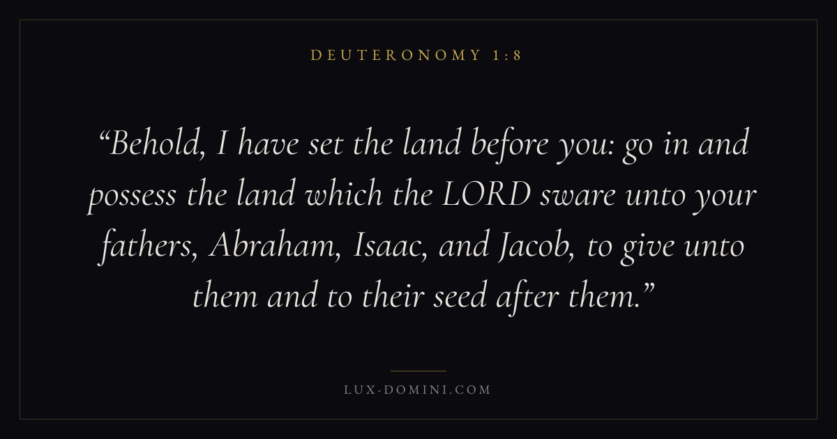 Behold, I have set the land before you: go in and possess the land which the LORD sware unto your fathers, Abraham, Isaac, and Jacob, to give unto them and to their seed after them.