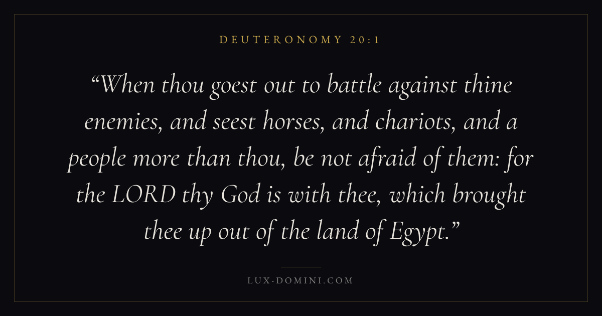 When thou goest out to battle against thine enemies, and seest horses, and chariots, and a people more than thou, be not afraid of them: for the LORD thy God is with thee, which brought thee up out of the land of Egypt.
