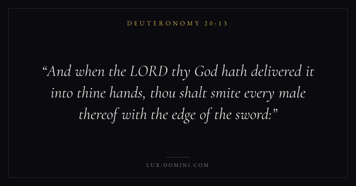 And when the LORD thy God hath delivered it into thine hands, thou shalt smite every male thereof with the edge of the sword: