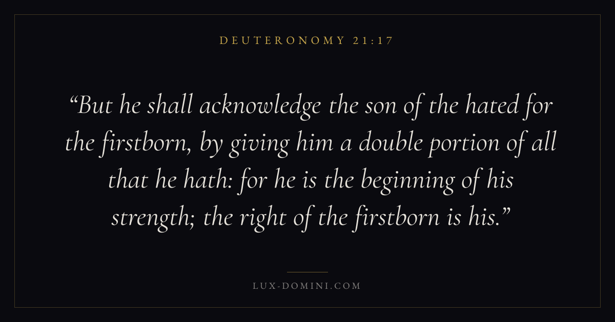 But he shall acknowledge the son of the hated for the firstborn, by giving him a double portion of all that he hath: for he is the beginning of his strength; the right of the firstborn is his.