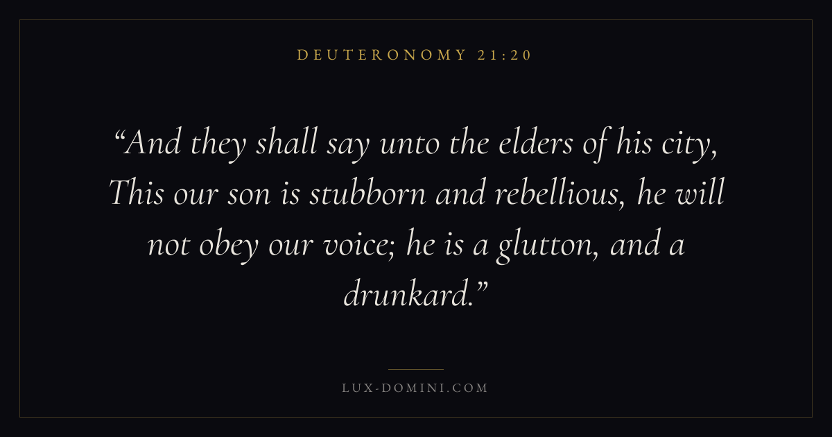 And they shall say unto the elders of his city, This our son is stubborn and rebellious, he will not obey our voice; he is a glutton, and a drunkard.