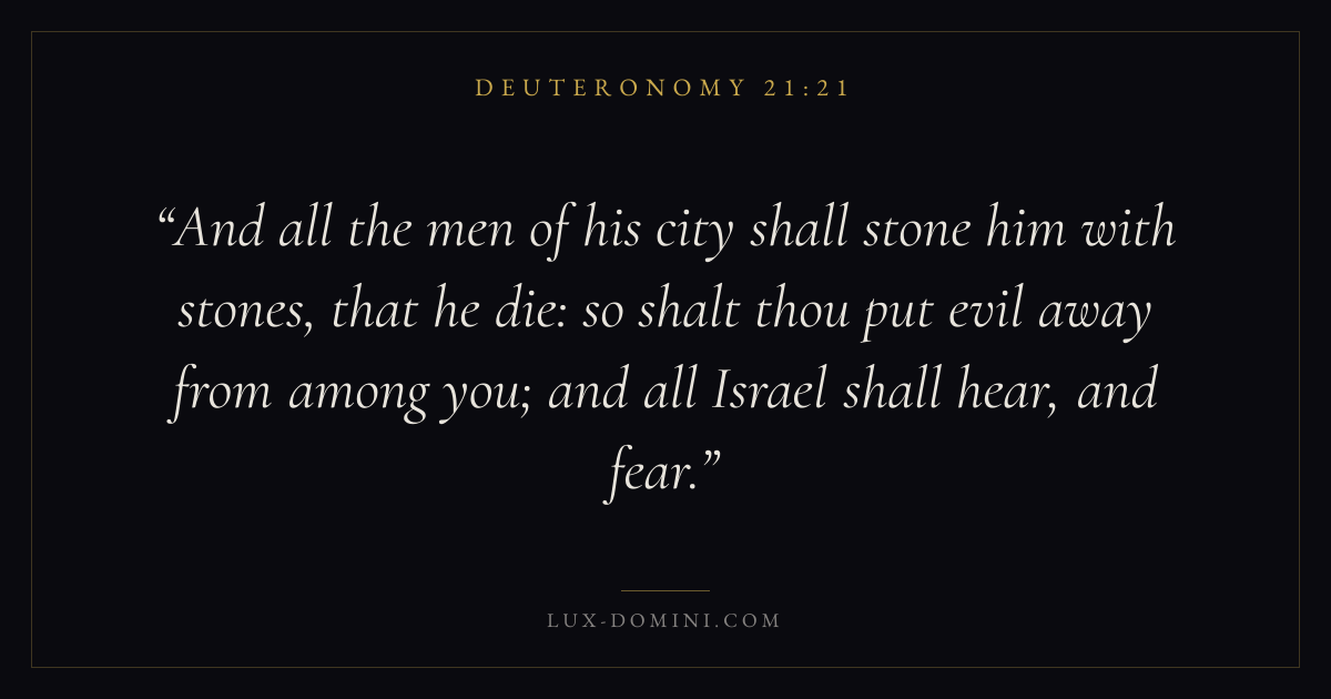 And all the men of his city shall stone him with stones, that he die: so shalt thou put evil away from among you; and all Israel shall hear, and fear.