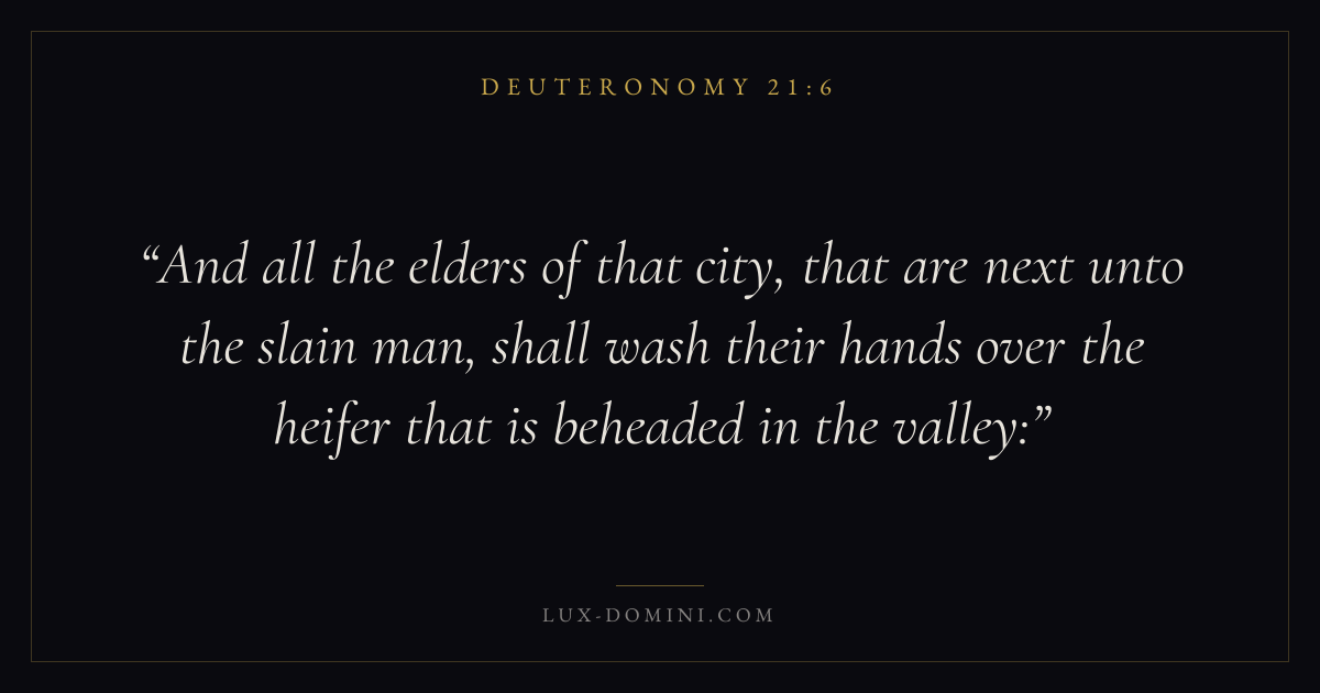 And all the elders of that city, that are next unto the slain man, shall wash their hands over the heifer that is beheaded in the valley: