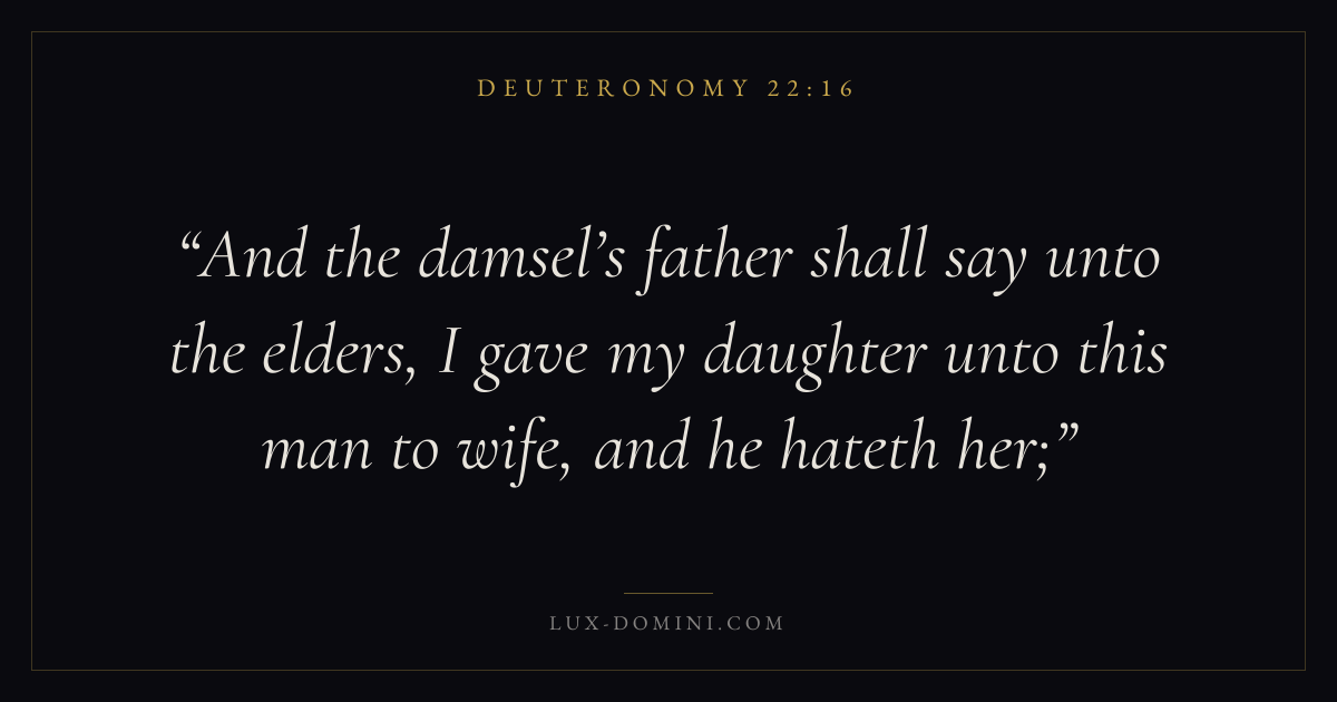 And the damsel’s father shall say unto the elders, I gave my daughter unto this man to wife, and he hateth her;