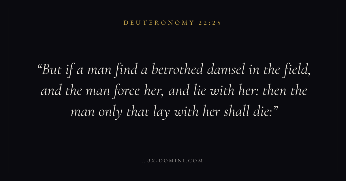 But if a man find a betrothed damsel in the field, and the man force her, and lie with her: then the man only that lay with her shall die: