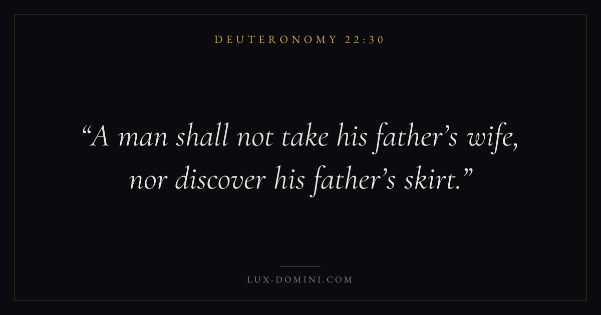 A man shall not take his father’s wife, nor discover his father’s skirt.