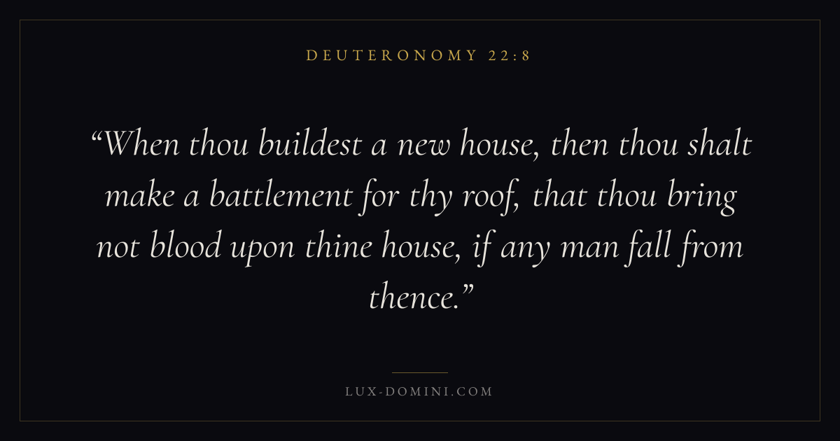 When thou buildest a new house, then thou shalt make a battlement for thy roof, that thou bring not blood upon thine house, if any man fall from thence.