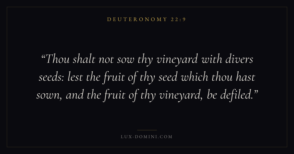 Thou shalt not sow thy vineyard with divers seeds: lest the fruit of thy seed which thou hast sown, and the fruit of thy vineyard, be defiled.