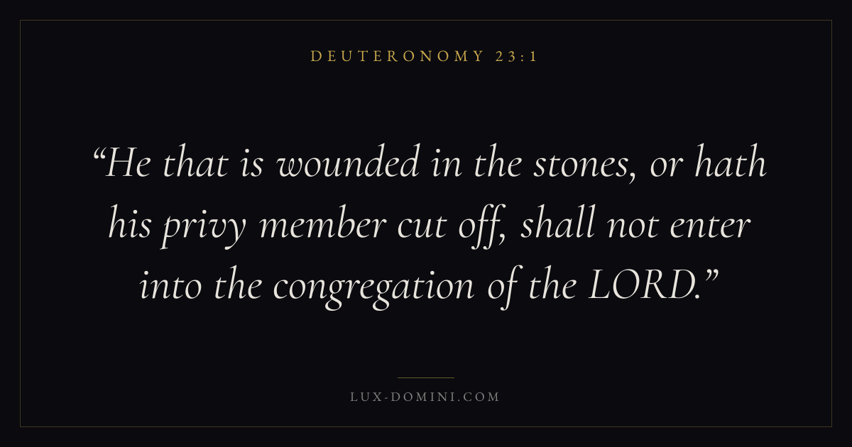 He that is wounded in the stones, or hath his privy member cut off, shall not enter into the congregation of the LORD.