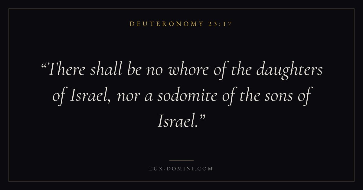 There shall be no whore of the daughters of Israel, nor a sodomite of the sons of Israel.