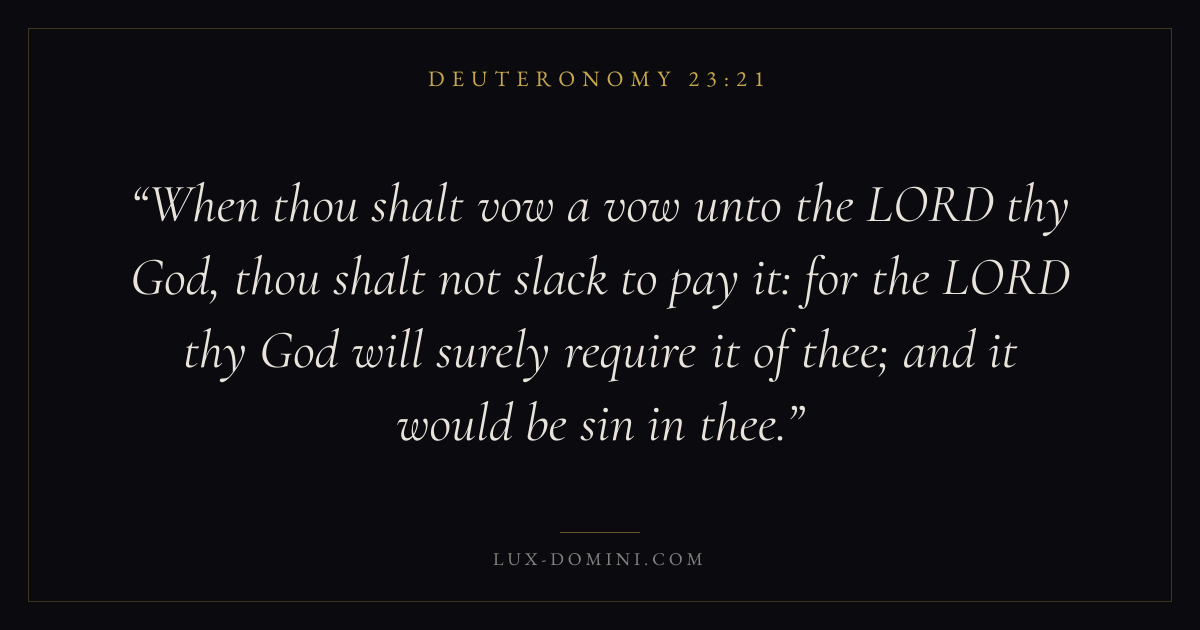 When thou shalt vow a vow unto the LORD thy God, thou shalt not slack to pay it: for the LORD thy God will surely require it of thee; and it would be sin in thee.