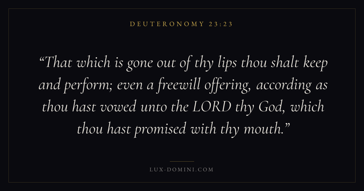 That which is gone out of thy lips thou shalt keep and perform; even a freewill offering, according as thou hast vowed unto the LORD thy God, which thou hast promised with thy mouth.