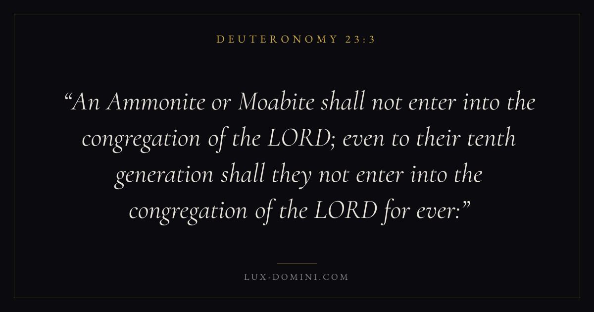 An Ammonite or Moabite shall not enter into the congregation of the LORD; even to their tenth generation shall they not enter into the congregation of the LORD for ever: