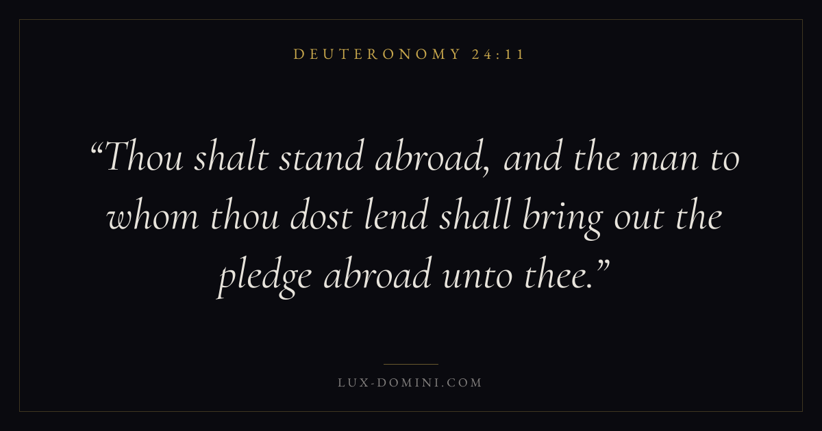 Thou shalt stand abroad, and the man to whom thou dost lend shall bring out the pledge abroad unto thee.