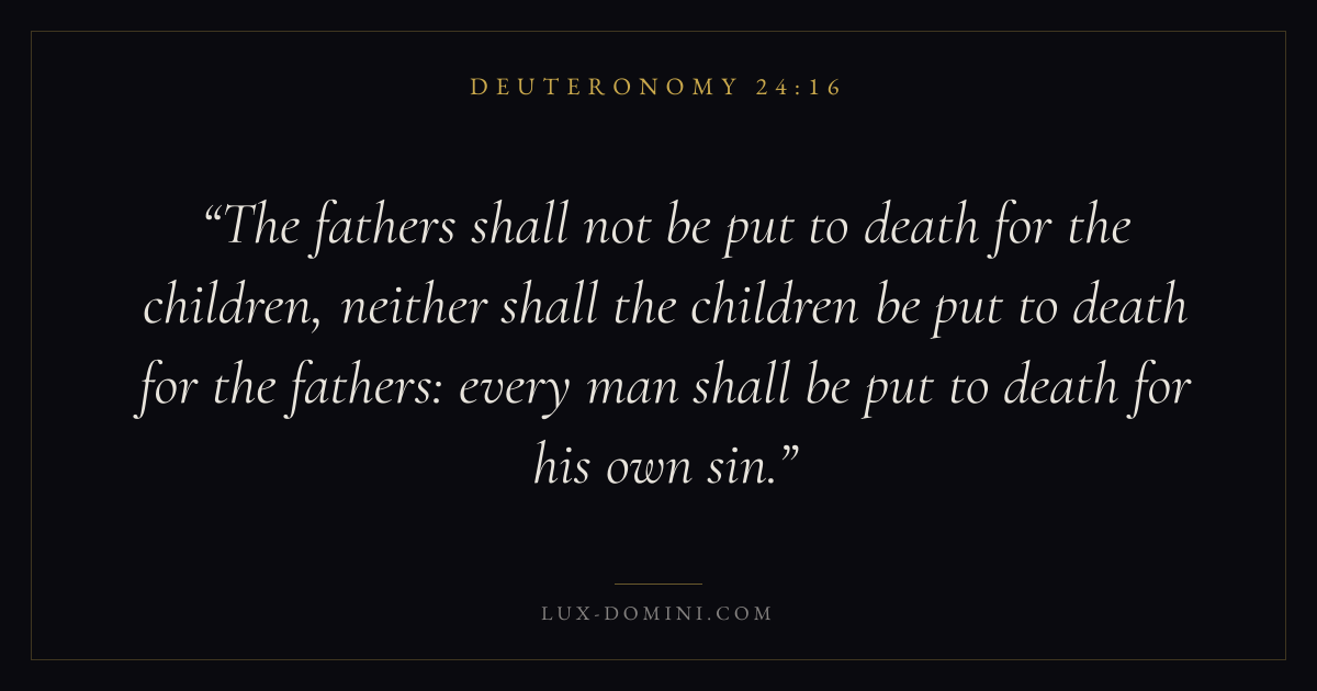 The fathers shall not be put to death for the children, neither shall the children be put to death for the fathers: every man shall be put to death for his own sin.