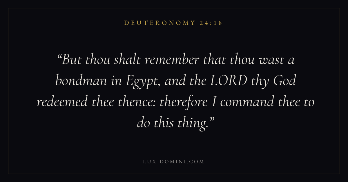 But thou shalt remember that thou wast a bondman in Egypt, and the LORD thy God redeemed thee thence: therefore I command thee to do this thing.