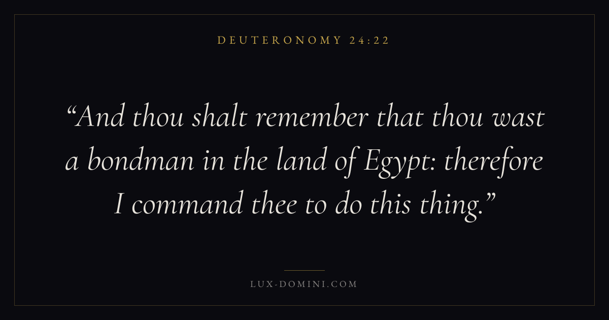 And thou shalt remember that thou wast a bondman in the land of Egypt: therefore I command thee to do this thing.
