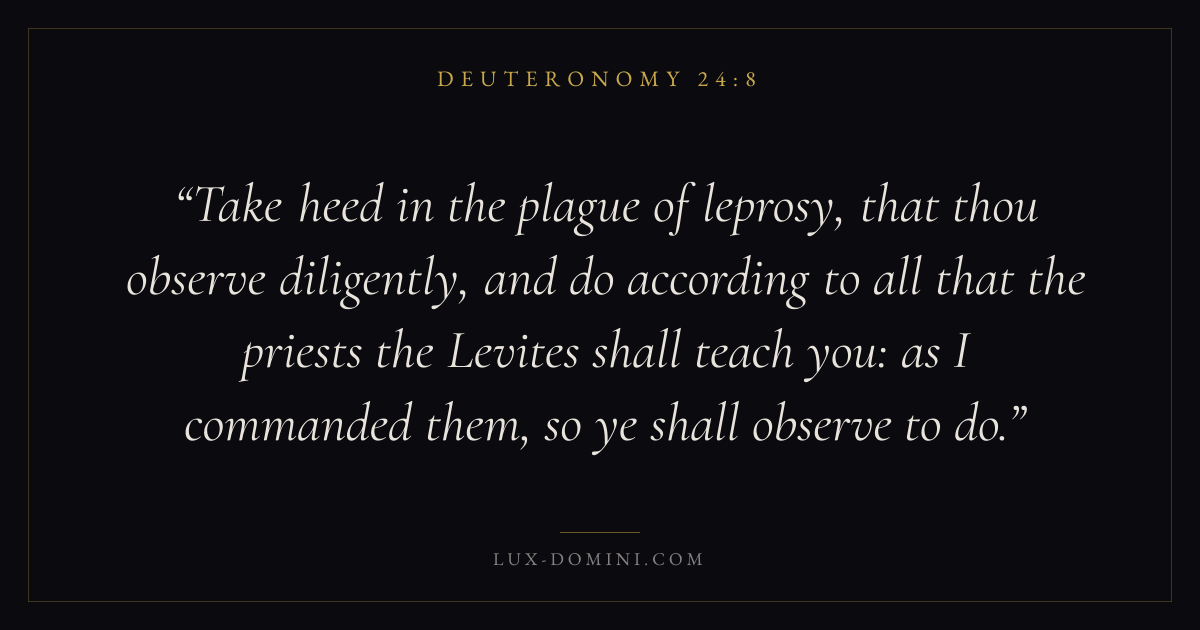 Take heed in the plague of leprosy, that thou observe diligently, and do according to all that the priests the Levites shall teach you: as I commanded them, so ye shall observe to do.