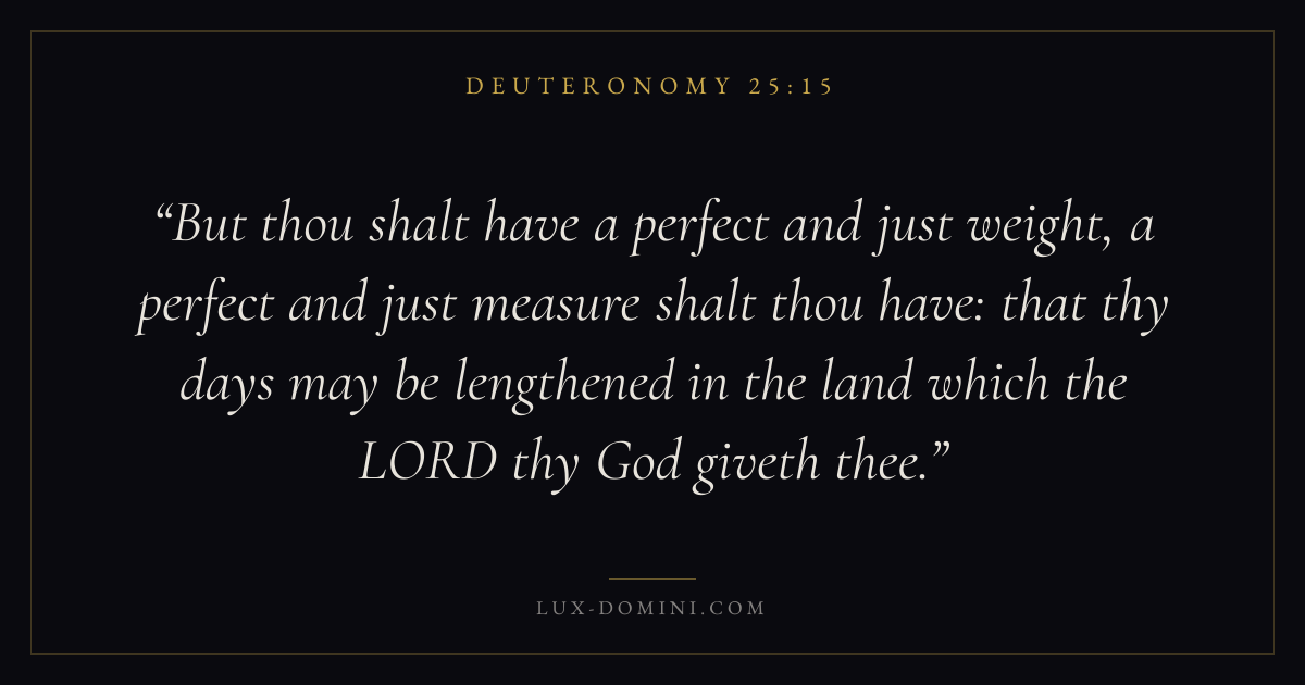 But thou shalt have a perfect and just weight, a perfect and just measure shalt thou have: that thy days may be lengthened in the land which the LORD thy God giveth thee.
