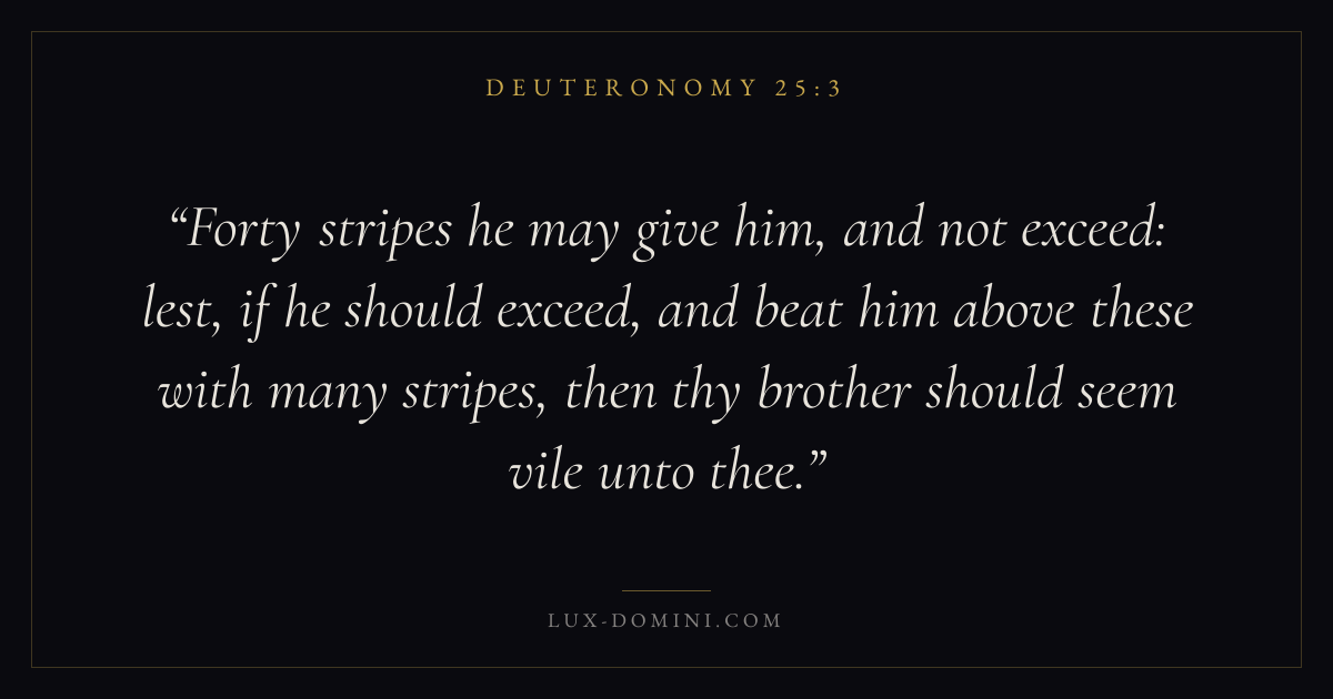 Forty stripes he may give him, and not exceed: lest, if he should exceed, and beat him above these with many stripes, then thy brother should seem vile unto thee.