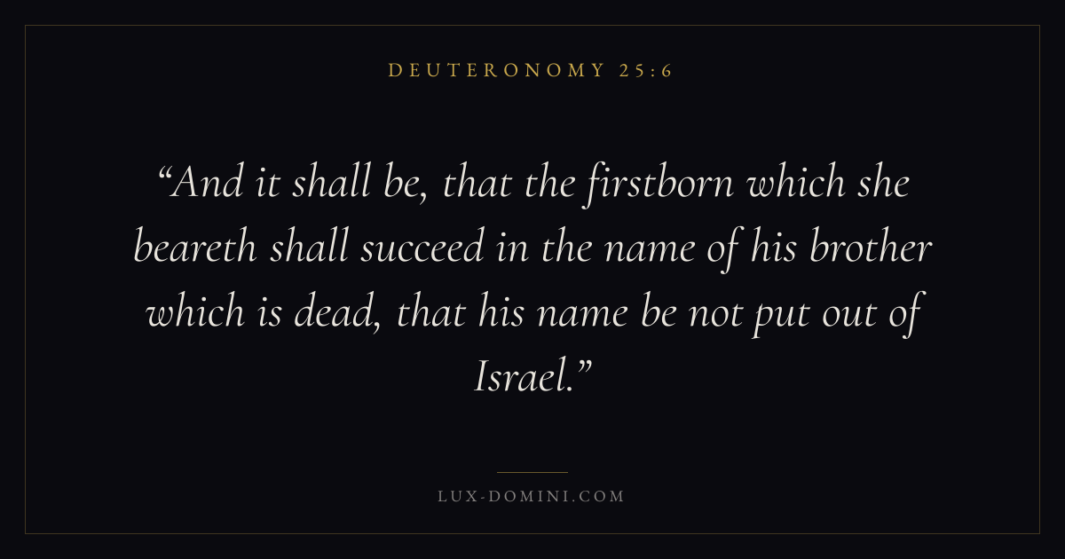 And it shall be, that the firstborn which she beareth shall succeed in the name of his brother which is dead, that his name be not put out of Israel.
