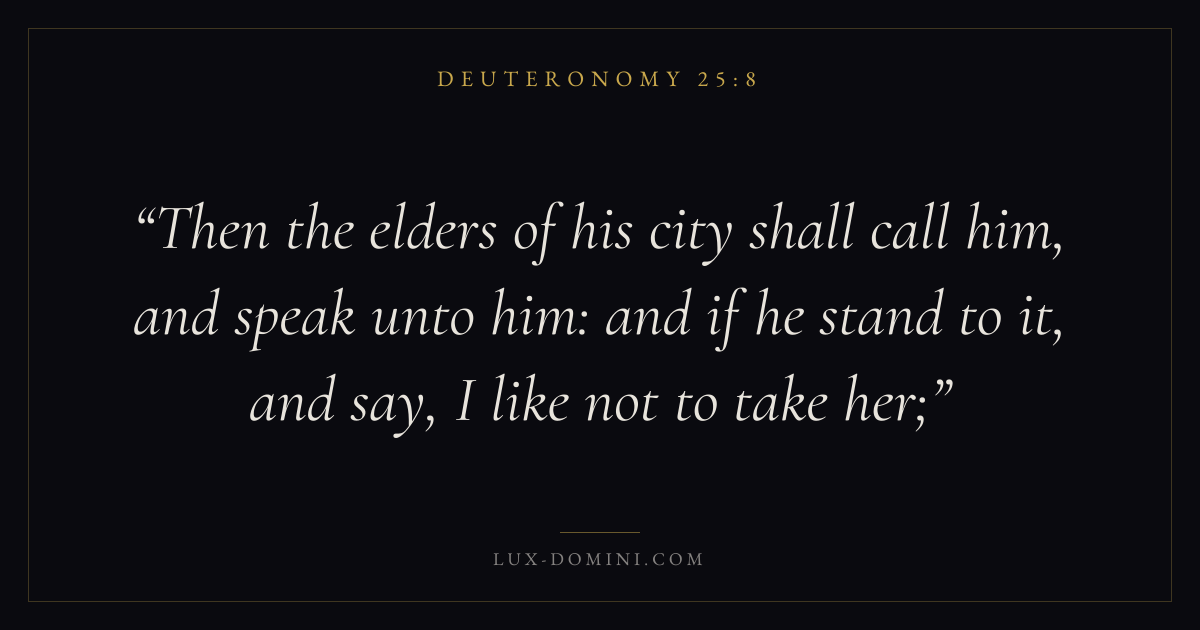 Then the elders of his city shall call him, and speak unto him: and if he stand to it, and say, I like not to take her;