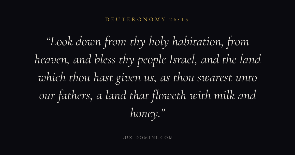 Look down from thy holy habitation, from heaven, and bless thy people Israel, and the land which thou hast given us, as thou swarest unto our fathers, a land that floweth with milk and honey.