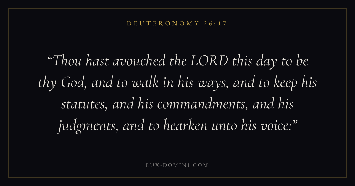 Thou hast avouched the LORD this day to be thy God, and to walk in his ways, and to keep his statutes, and his commandments, and his judgments, and to hearken unto his voice: