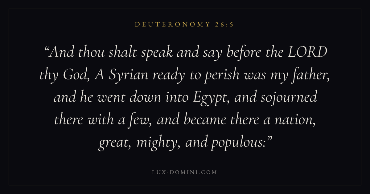 And thou shalt speak and say before the LORD thy God, A Syrian ready to perish was my father, and he went down into Egypt, and sojourned there with a few, and became there a nation, great, mighty, and populous: