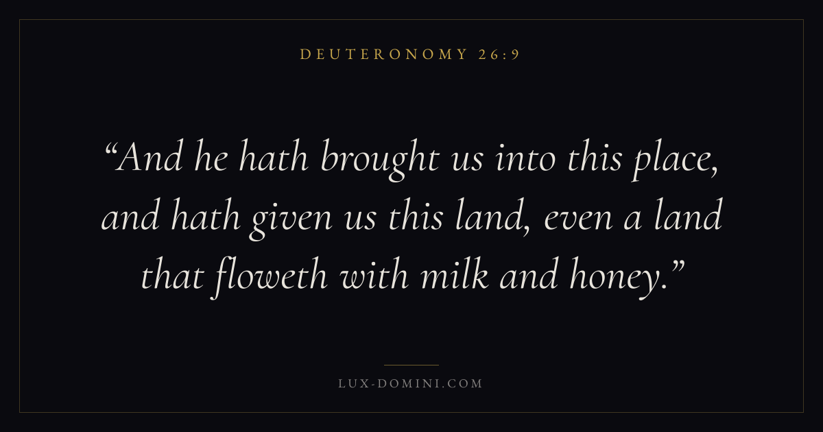 And he hath brought us into this place, and hath given us this land, even a land that floweth with milk and honey.